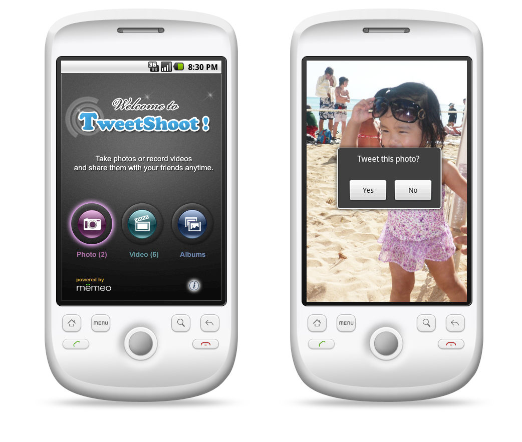 These are Memeo Tweet Shoot for android phone - In 2008 for Memeo company.