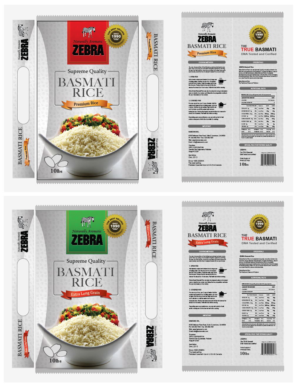 Zebra Rice package Design - In 2012 for Zebra Basmati Rice.