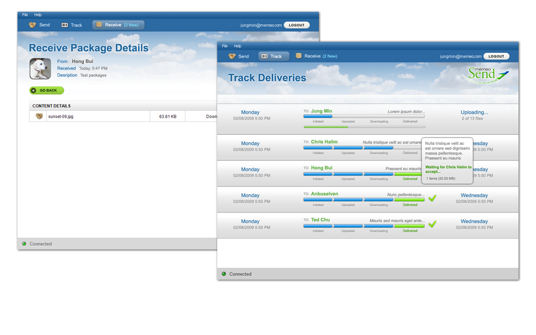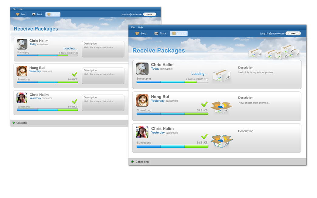 Send - large files - Photo and video with your friend - In 2008 for Memeo company.